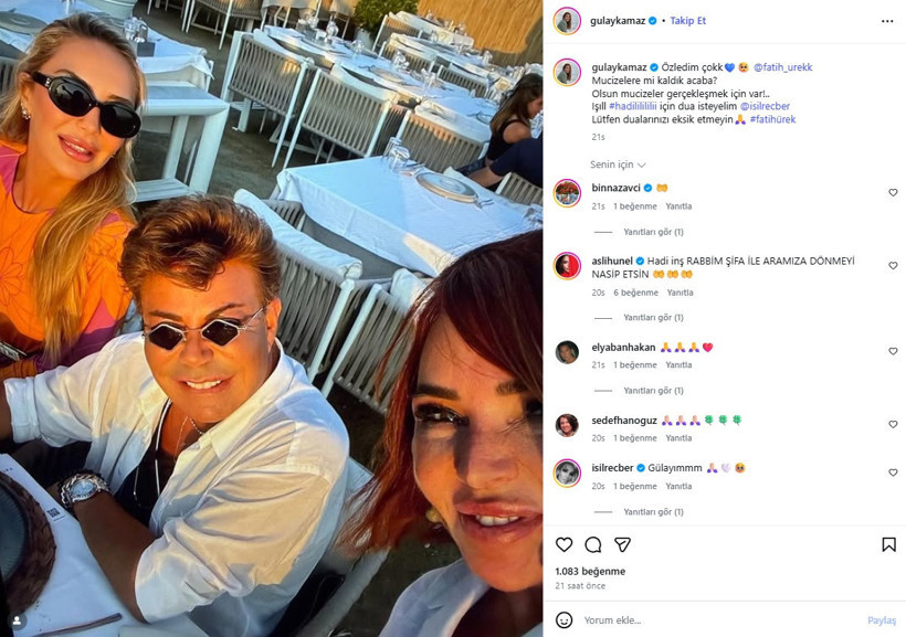 Ürek’in dostu Gülay Kamaz eski bir fotoğrafı sosyal medyada “Çok özledim. Mucizelere mi kaldık acaba? Olsun mucizeler gerçekleşmek için var! Lütfen dualarınızı eksik etmeyin” notuyla paylaşarak duygulandırdı.