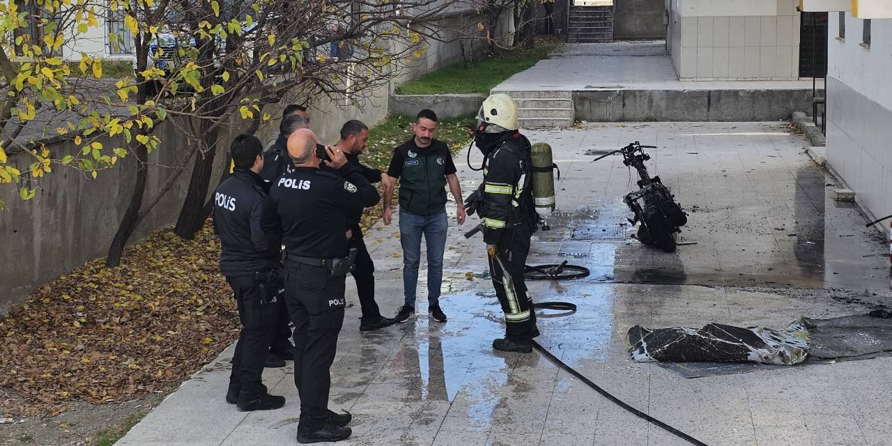 Yangında motosiklet kullanılamaz hale gelirken, apartmanda da hasar oluştu. Olayla ilgili soruşturma başlatıldı.